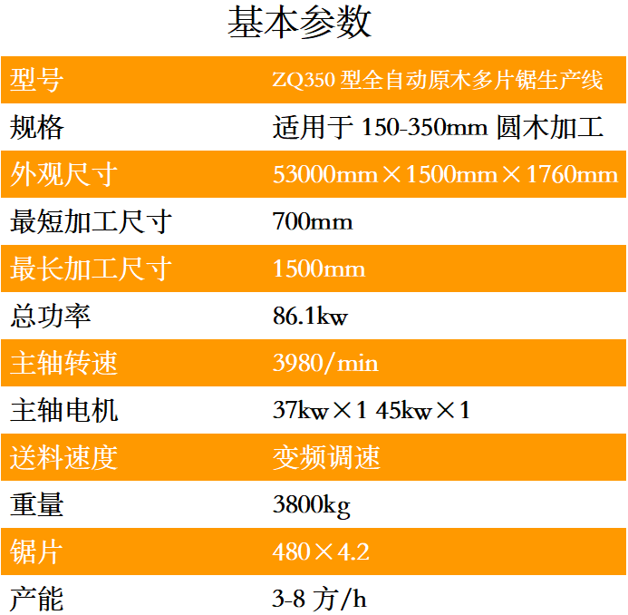 | ZQ350型原木多片鋸 | 5.30 | 1.50 | 1.76 |